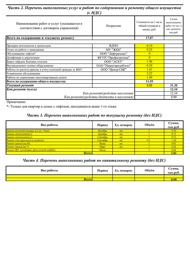 Анкета дома | Отчет о выполнении договора управления(731-3и) |