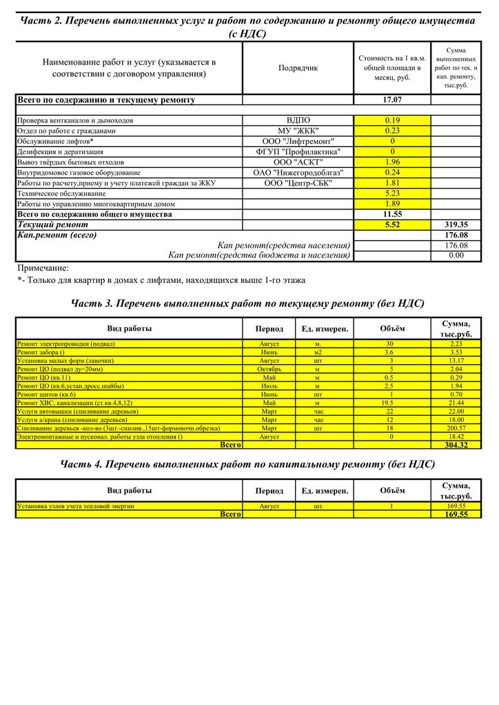 Анкета дома | Отчет о выполнении договора управления(731-3и) |