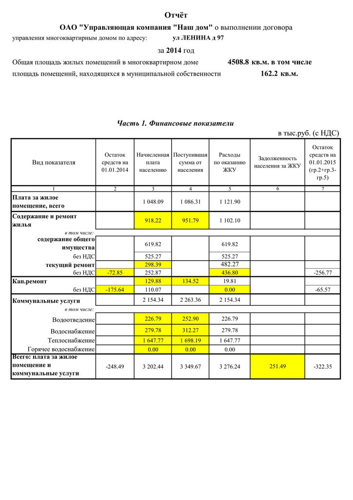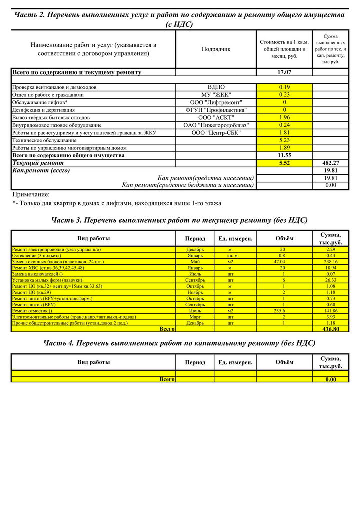 Анкета дома | Отчет о выполнении договора управления(731-3и) |
