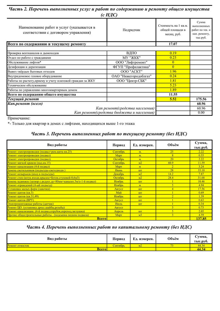 Анкета дома | Отчет о выполнении договора управления(731-3и) |