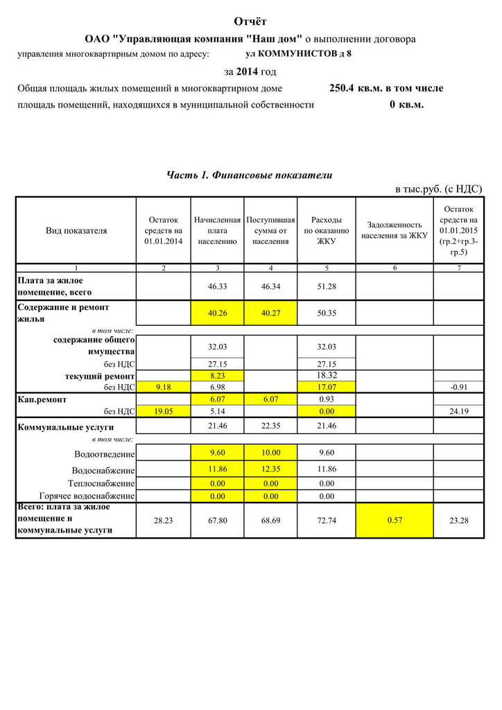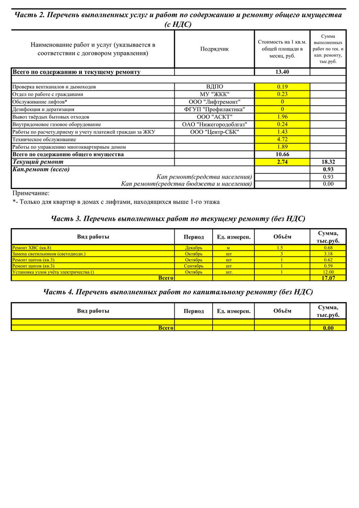 Анкета дома | Отчет о выполнении договора управления(731-3и) |
