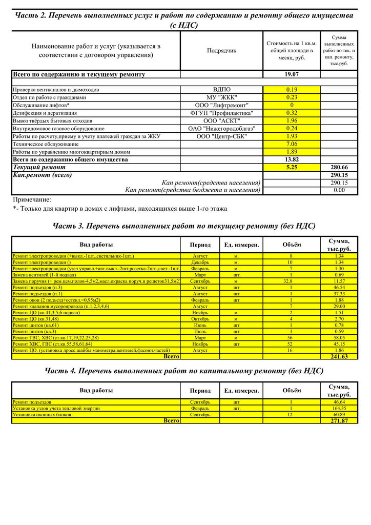 Анкета дома | Отчет о выполнении договора управления(731-3и) |