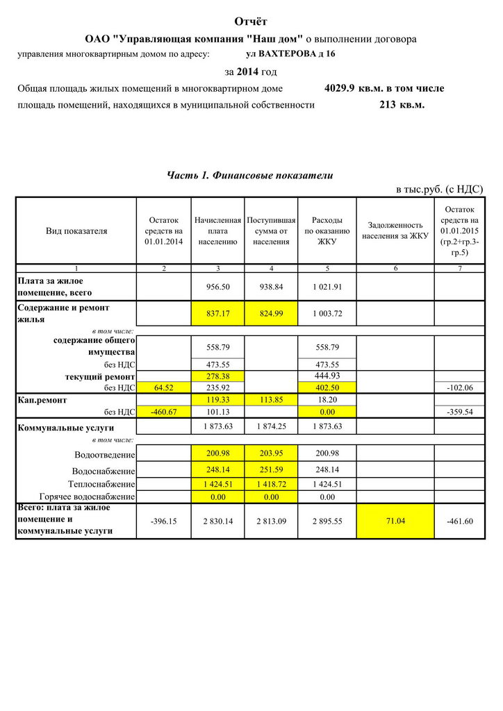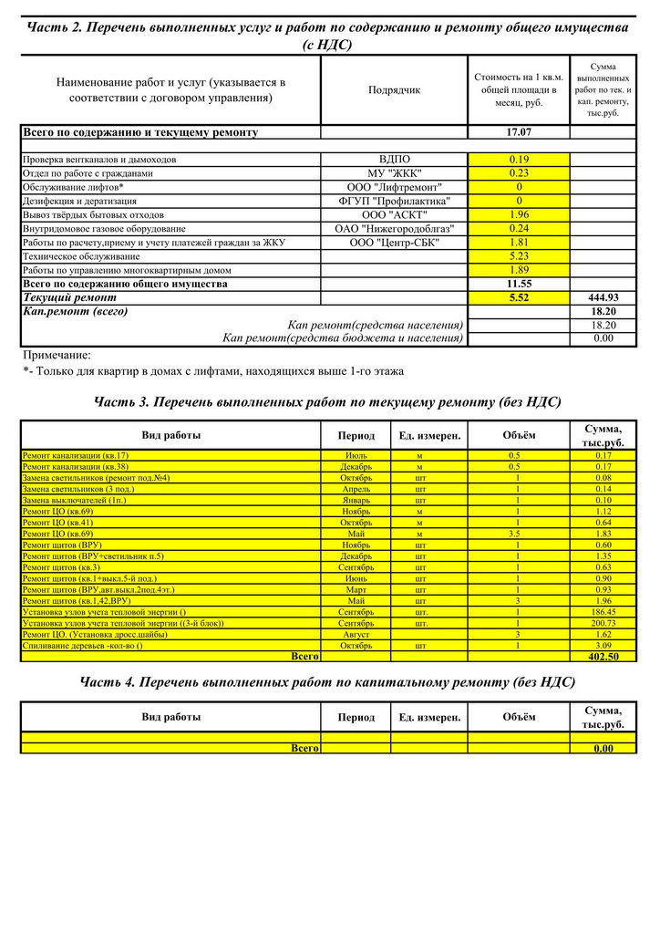 Анкета дома | Отчет о выполнении договора управления(731-3и) |